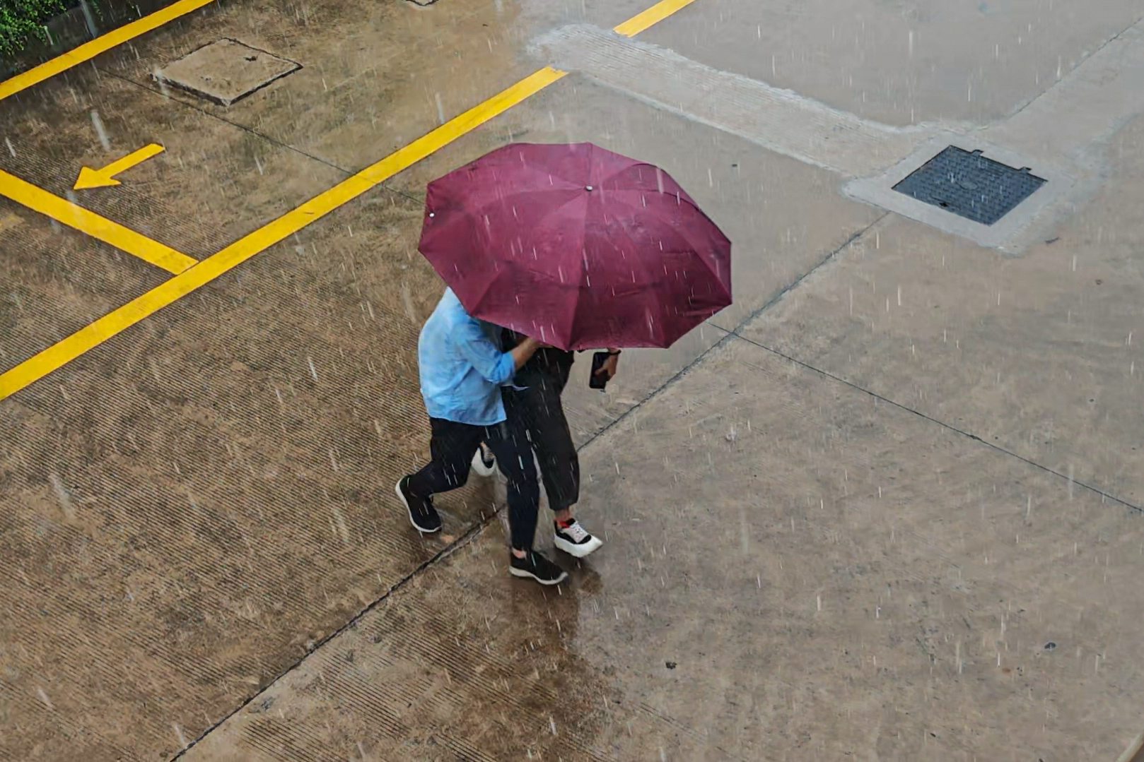 行人在雨中穿梭